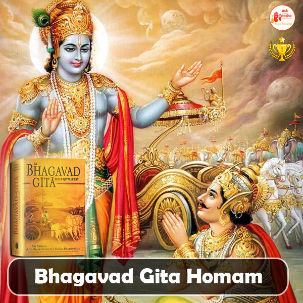 Bhagwat Gita homam is a Vedic ritual which includes reciting verses of Gita, yagya and offerings to Lord Krishna with chanting of mantras. Bhagavat Gita Homam is performed by paying homage to Lord Agni and reciting some verses of Gita. Out of almost seven hundred verses, only the verses carrying the crux of the whole scripture are recited.