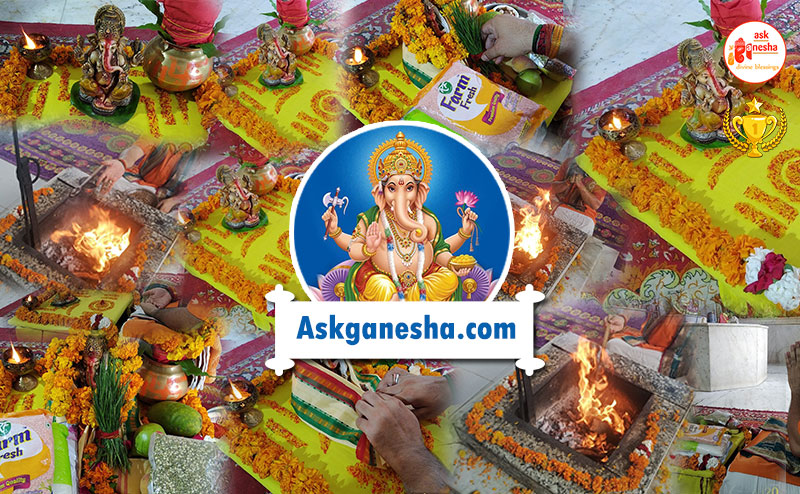 This is the first step of the Vidhi. In this step, the priests performing the yagna welcomes Lord Ganpati and other Gods and Goddesses through mantra chanting. This is an important part of the yagya as it builds the strength of the yagna and pooja. Avahaan is an attempt to invite the Lords to honour the yagna.