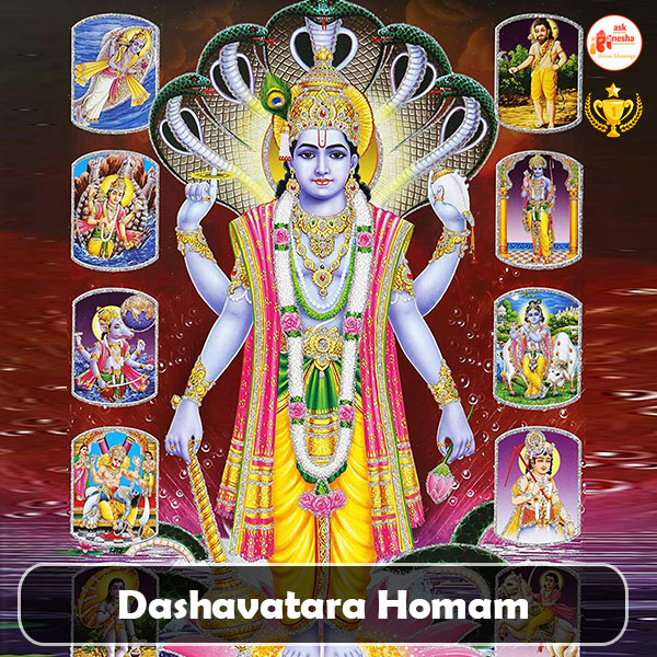 Dashavatara Homam is a Vedic ritual done to appease all the ten avatars of Lord Vishnu. This homam aims at getting the collective blessings of all the ten manifestations of Lord Vishnu. Homam, Yagya, mantra chanting, offerings and many other rituals are performed as a part of this Homam. This Homam is performed to eliminate evil, negative and demonic forces from life.Contact Askganesha for more details about this Homam.