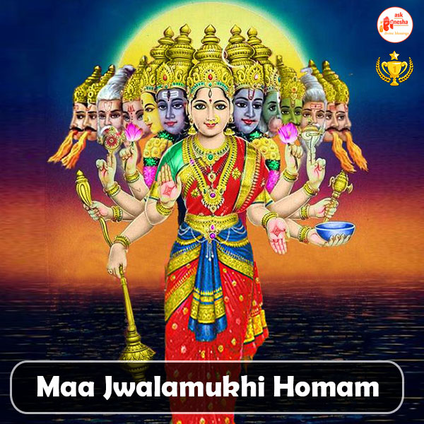 Jwalaji Homam is a unique Vedic ritual which appeases goddess Jwalamukhi who is one of the manifestations of Adi Shakti. Devi Jwalamukhi gets appeased with the offerings, mantras and hymns performed during the Homam and blesses the devote with the removal of obstacles, negativity and black magic spells, and bestows progeny, abundance and happiness in life. Contact Askganesha astrologers for more information and for performing this Homam online on their behalf.