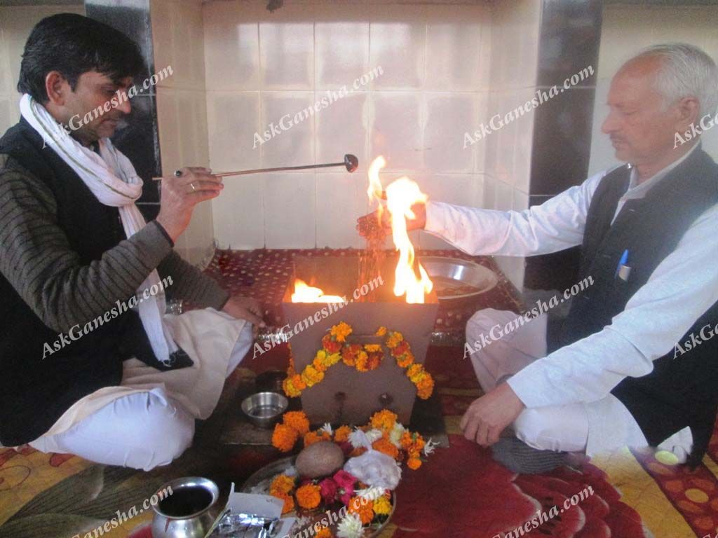 This is the first step of the Vidhi. In this step, the priests performing the yagna welcomes Lord Ganpati and other Gods and Goddesses through mantra chanting. This is an important part of the yagya as it builds the strength of the yagna and pooja. Avahaan is an attempt to invite the Lords to honour the yagna.