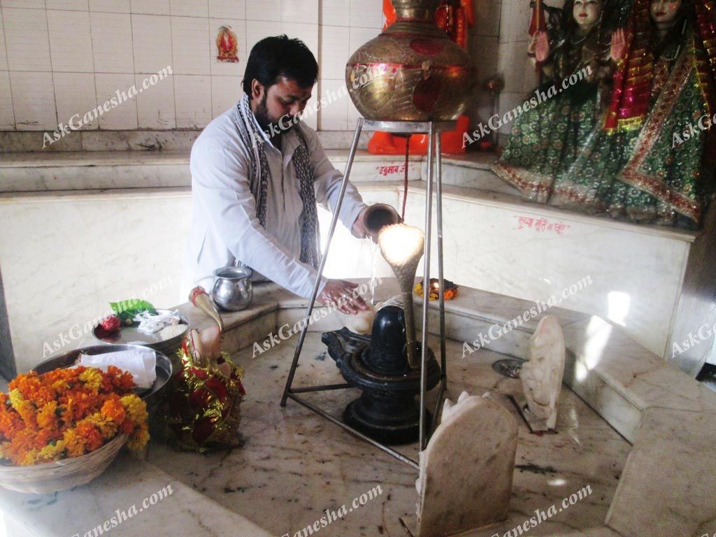 Nandi the White Bull is the gate-guardian deity of Kailasa, the abode of Lord Shiva. He is usually depicted as a bull, which also serves as the Vahanaor the mount to Shiva. The Sanskrit word Nandi has the meaning of happiness, joy, and satisfaction, the properties of the divine guardian of Shiva- Nandi.Almost all Shiva temples display stone-images of a seated Nandi, generally facing the main shrine. The white color of the bull symbolizes purity and justice. Symbolically, the seated Nandi towards sanctum in Shiva temples, represents an individual jivatmaor soul waiting for the blessings of the Lord and the message that the jivatmashould always be focused on the Paramatma or the Supreme Soul. It is said that the puja of LordShiva is incomplete if Nandi bull is not worshipped along with him.