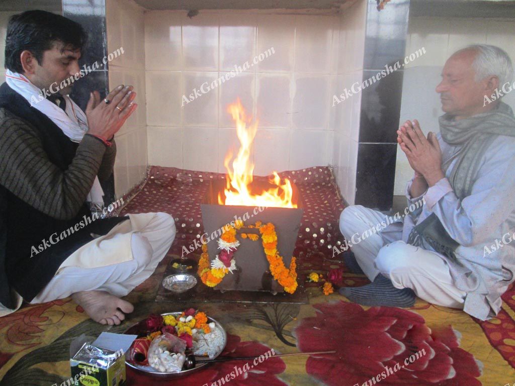 This is an aesthetic step which brings us closer to the yagya. In this procedure, the priests and the attendees offer flowers to the dieties’ statues or photographs. Offering flowers in the feet of the Gods/Goddesses is a kind of showing affection and respect towards them. It is an act of pleasing the deities.