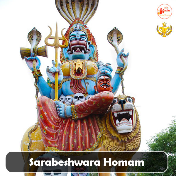 Sarabeshwara Homam is a Vedic ritual of praying to Lord Sarabeshwara for his blessings. it is performed with Yagya, mantra chanting, offerings and many other rituals. This is done to dispel negative and evil forces, greed, lust, anger, and pride and bestows with peace, tranquillity, compassion, success, good health, happiness and salvation. Contact Askganesha astrologers for more information.