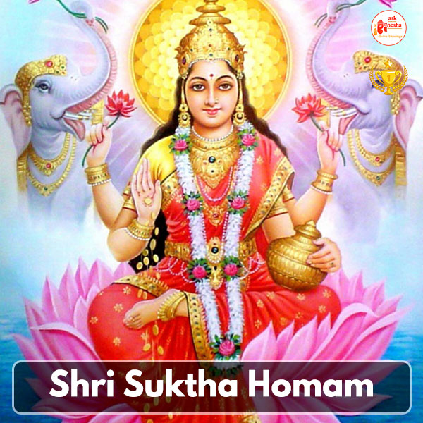Shri Suktha Homam is a unique and powerful Vedic ritual that includes yagna in the name of the Goddess Shri Suktha, various offerings to the goddess, and recitation of hymns and mantras related to the Shri Suktha. This Homam invigorates goddess Lakshmi who is considered to be the authority of wealth, assets, riches, material comforts etc. She makes up for the losses with her blessings and brings the life of the devotee back on track. This Homam makes up for all your losses. Contact Askganesha for more information.