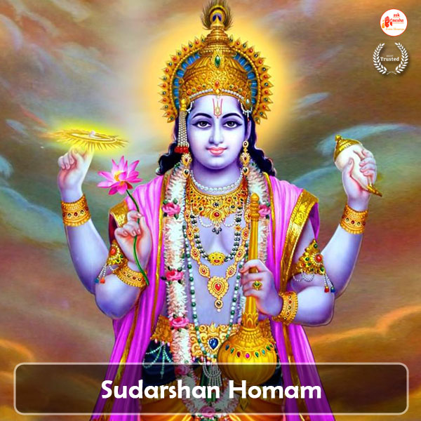 Sudarshan Homam is a Vedic ritual to appease Lord Sudarshan, who derives its origin from the Sudarshan Chakra. This homam is done to invoke the powers and strength of Sudarshan Chakra, the devastating weapon of Lord Vishnu. Various mantras are chanted along with Homam and Yagyas and offerings of different objects to Lord Sudarshan. This Homam destroys all negative and evil forces around the native. Contact Askganesha astrologers for more information.